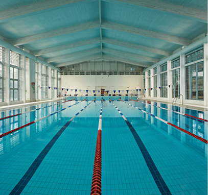 Pusat kebugaran lengkap dengan indoor sport center multifungsi dan kolam renang semi-Olympic untuk mendukung prestasi non-akademik.